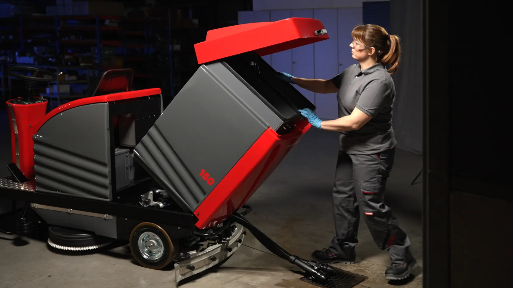Der kippbare Tank ermöglicht den leichten und schnellen Zugang zu den wichtigsten Bauteilen der Maschine. Das Ausspülen und Reinigen des Tanks wird erheblich erleichtert.