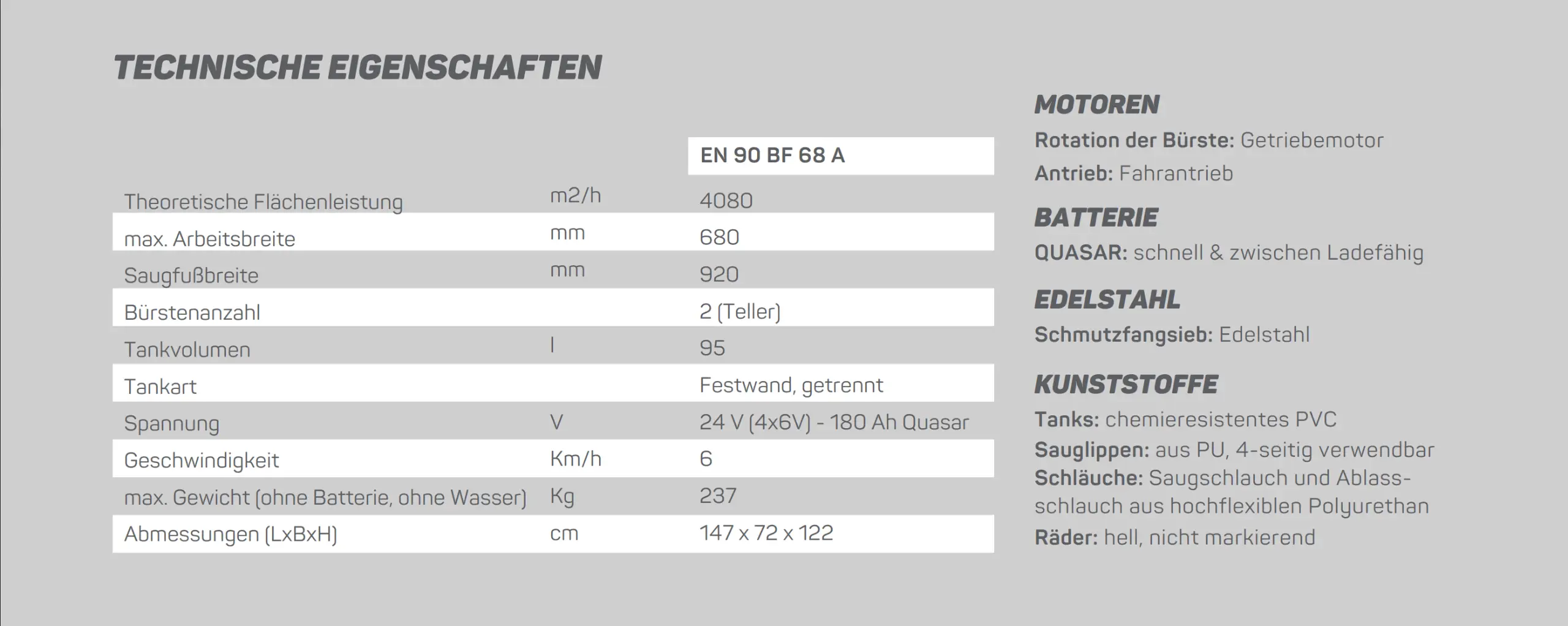 Hohe Batteriekapazität von bis zu 720 Ah ermöglicht bis zu 8 Stunden kontinuierliche Reinigungsleistung und meistert Steigungen über 20% mit leistungsstarkem Fahrantrieb.