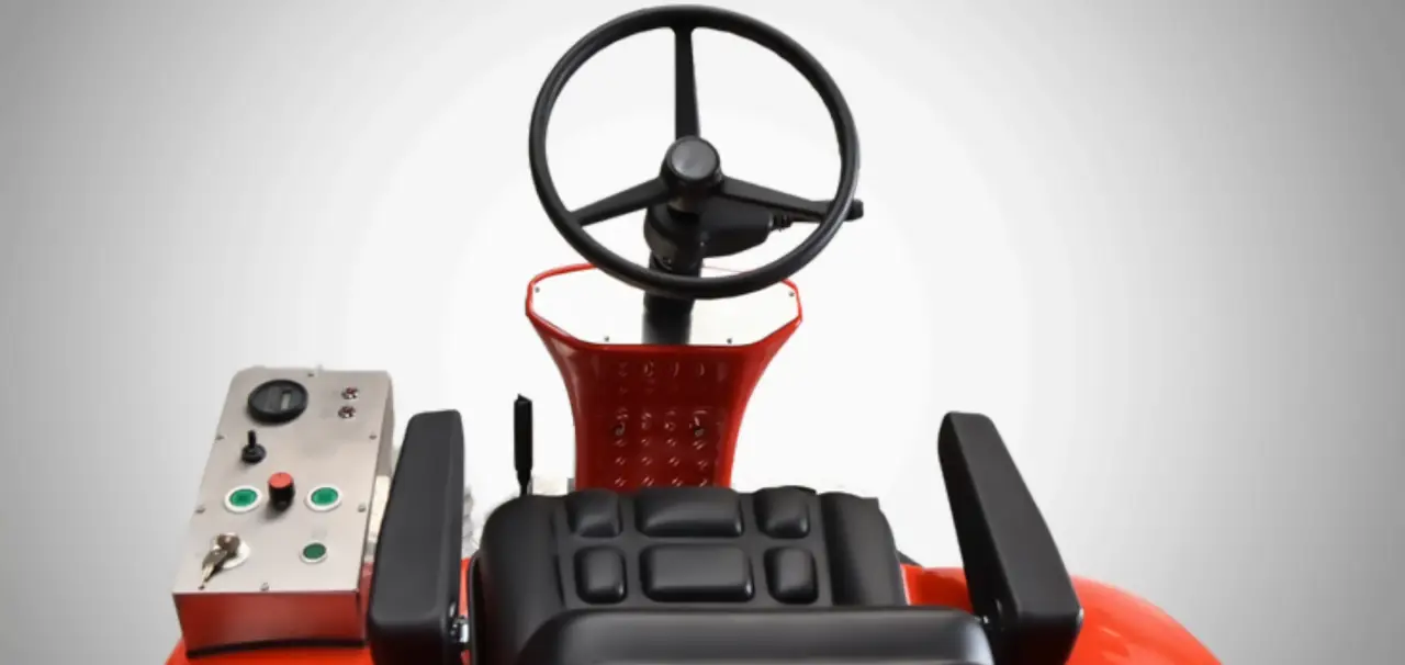 Die mittige Sitzposition ermöglicht trotz der beeindruckenden Größe der Maschine eine einfache Handhabung und perfekte Sicht.